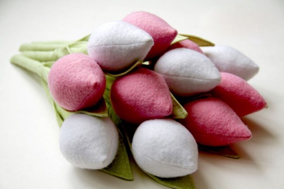 Сшейте столько тюльпанов, сколько Вам захочется. Очень освежает интерьер букет из 7 и более тюльпанов. А еще эти тюльпаны – отличный подарок!