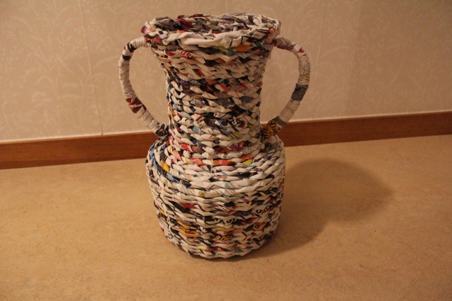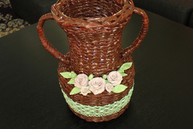 Очень красиво! Давно созреваю для газетных трубочек, хотя бы до простой корзинки, а тут ваза да еще и с цветами. Для меня вообще космос…