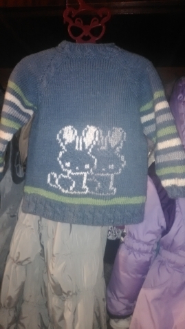 Пока гостила у нас племянница моя Олеся с сыном (из далекого Казахстана), связала Олежке кофтюльку. Впервые попробовала жаккард без протяжек. Сначала приноровиться не могла, потом хорошо пошло. Только вот изнанку не успела сфоткать - упаковали подарочек. А вообще понравилось - нитки не висят. Теперь еще двухсторонний жаккард надо опробовать.