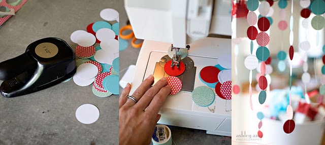 Прошить можно не только полоски цветной бумаги. Вот еще примеры подобных новогодних гирлянд.