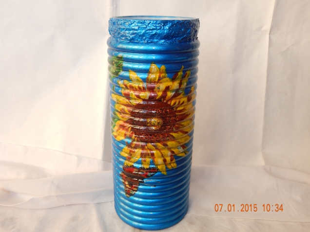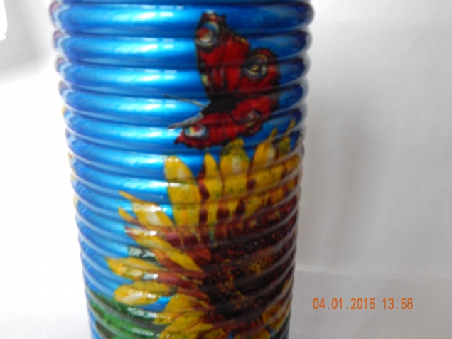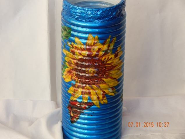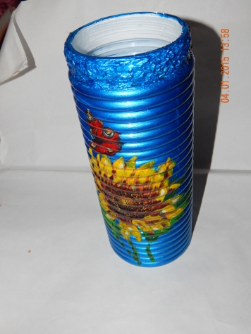 также делаю вазы из бутылочек .стаканов под пиво и жестяного туба.