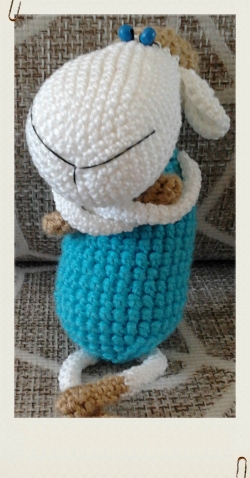 Долго выбирала, кого же сделать непосредственно парашютистом. Выбор пал на овечку в технике амигуруми. Кстати, впервые вязала игрушку-амигуруми. Мне понравилось: несложно и быстро (в данном случае с овечкой).