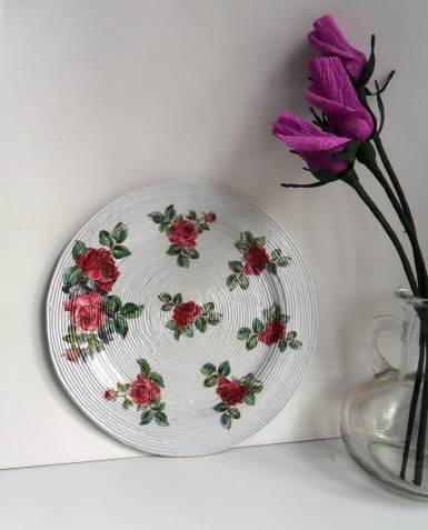 Собрала обрывки от салфеток и слепила из того, что было. Получилась вот такая тарелочка