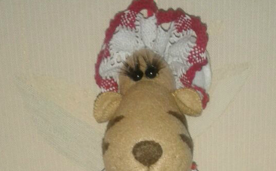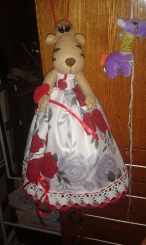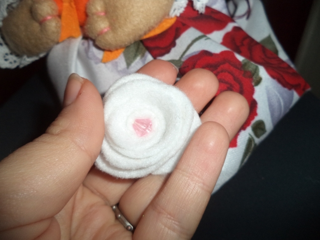 я понимаю что очень много цветов и так...но вот еще розочка на чепчик и пришиваем веревочку на которой наша Тигра будет висеть))))))
