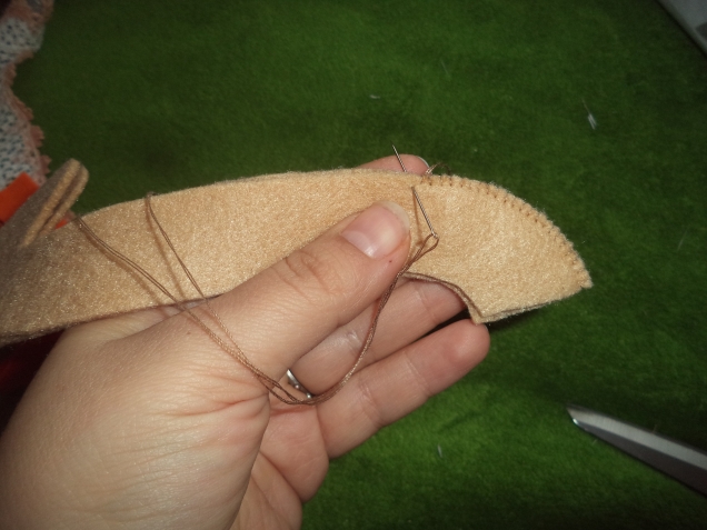 пришиваем тигрячие полосочки)))я устала,поэтому у Тигры только 3 полосочки на хвосте)))