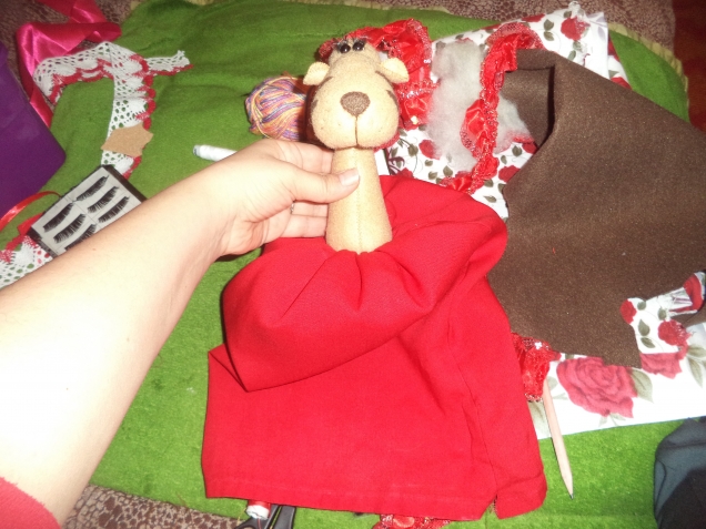 соединяем голову к телу потайным швом,пришиваем мешочек к низу тела)))с низу мешочка вдеваем резиночку)))