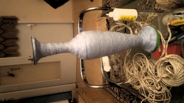 Эта ваза выполнена в технике папье-маше, но не совсем обычно в сочетании с джутовой филигранью