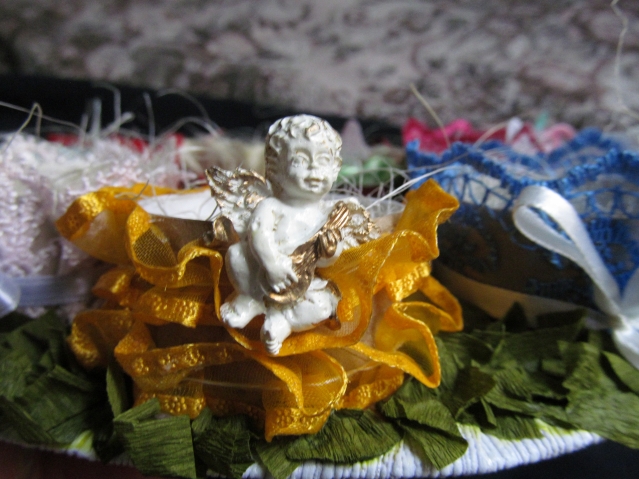 Доброго времени суток всем! Потихоньку начала готовиться к Пасхе. Сегодня покажу вам подставку для пасхальных яиц и цыпляток в "скорлупке". Может кого-нибудь вдохновят. Все очень просто: берем гофрокартон, большую тарелку, обводим ( делаем два "блина" ), вырезаем, склеиваем, положив полоски гофрокартона перпендикулярно друг к другу. Можно усилить, проклеив между "блинами" ткань или сделав дополнительный "блин". Ну это уж сколько у вас есть гофрокартона. С изнанки я приклеила обои, оставшиеся после ремонта. Ячеечки для яиц я сделала из втулки от бумажных полотенец. Внутрь положила сизаль - это гнездышко. Втулки украшала кусочками кружев и тонкими ленточками. Вокруг гнездышек травка из гофрированной бумаги. Еще использовала паетки цветов и бабочек. Это уж как кому фантазия подскажет! Клей Момент Кристалл.
