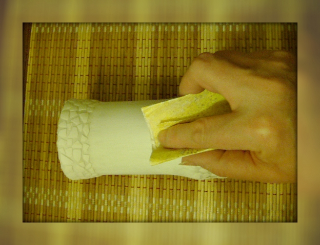 10.Покрываем лаком и кусочком сухой губки для уборки наносим золотую краску.