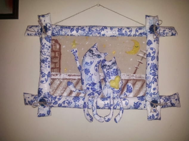 Текстильное панно для любимой подруги"Гжелевые коты".