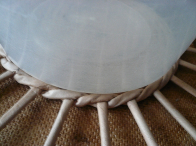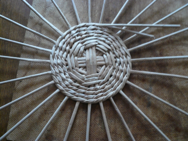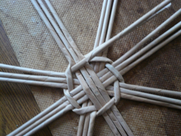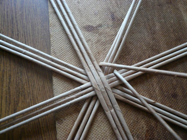 Сначала берём трубочки для плетения круглого дна.. На кусочек оргалита не обращайте внимания - это "ветеран" рукоделия)))