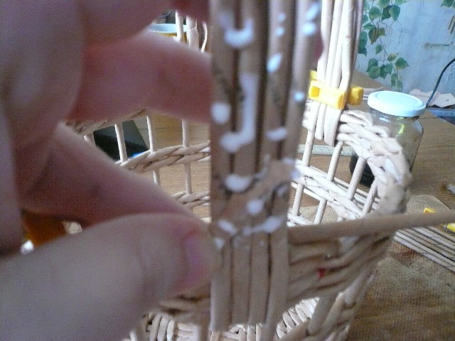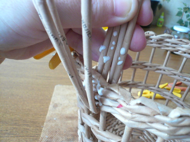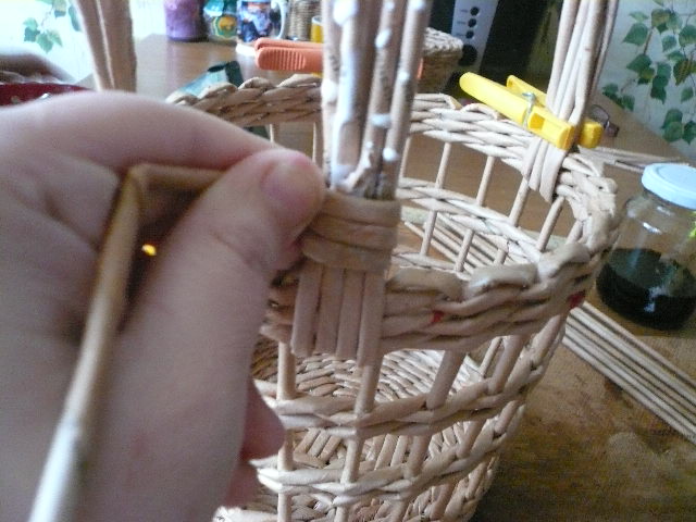 ...подклеиваем, намазываем трубочки основания и обкручиваем ручку..