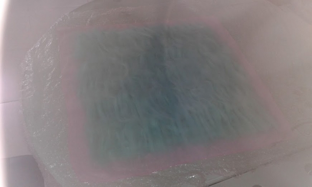 платочек мочим мыльной водичкой и раскладываем на пупырке.