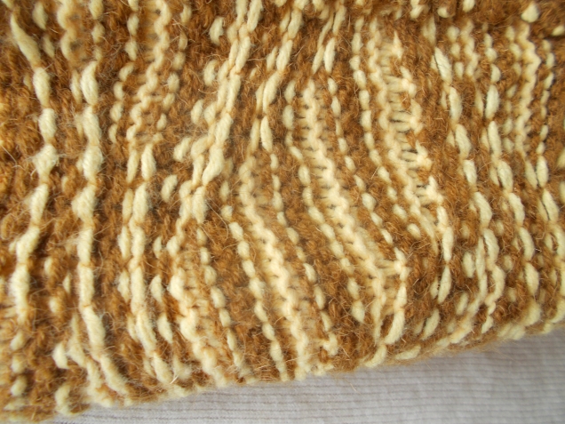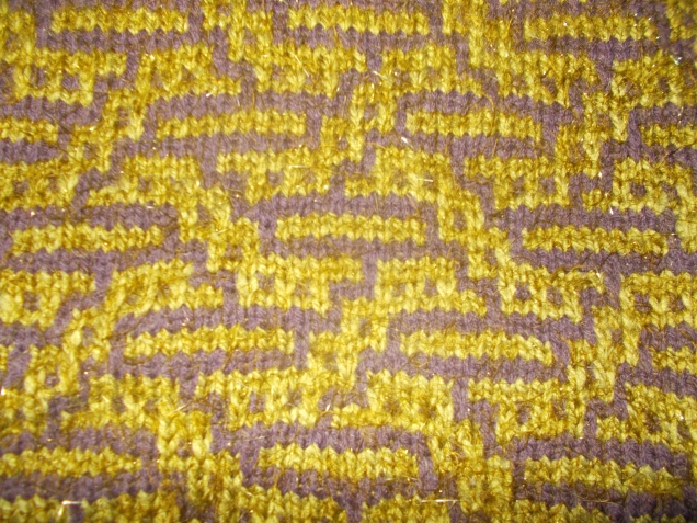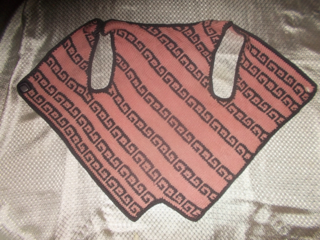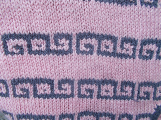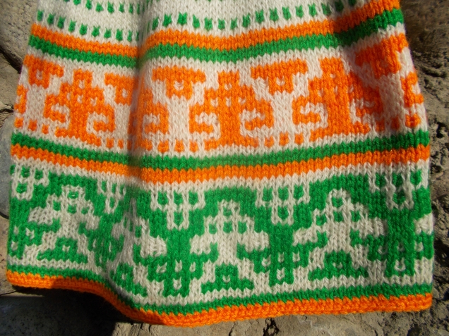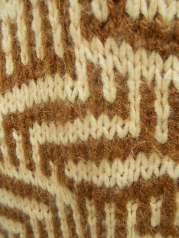 Здесь случился казус. Начинала вязать по вечерам, при электрическом свете. Перепутала пряжу, думала, что вяжу рисунок коричневым цветом.