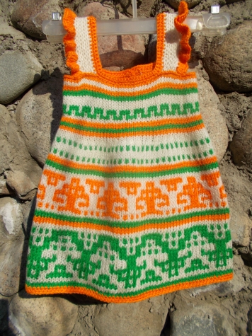 Это теплый сарафанчик для гипотетической девочки 6-9 мес. Ну, на сколько хватило пряжи, такой размер и связала.)))