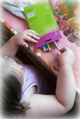 Еленушка тут же воспользовалась карандашиками! кстати очень удобные,трехгранные и очень яркие цвета! Спасибо!