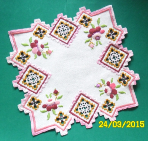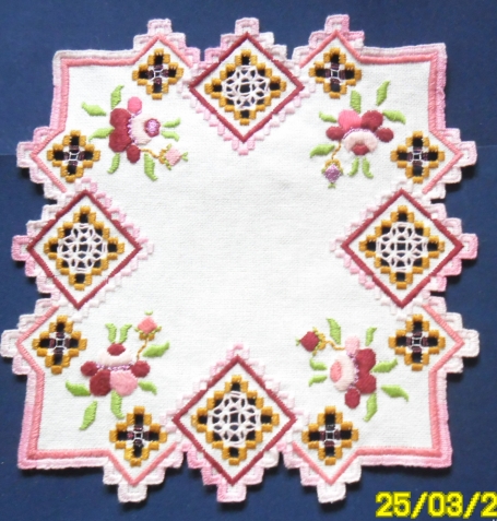 Приветствую всех рукодельниц-хардангерш и любительниц Хардангера своей новой работой. Она известна вам по совместному отшиву дорожек и салфеток с вышитыми розами от Ларисы (Lori). Наконец-то завершила её!...