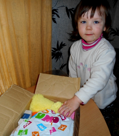 Вот, сидим мы дома с Эвелиной, обе с соплями, кашлем и температурой, такое настроение скверное, думаю, пойду почту посмотрю, может квиток принесли, открываю почтовый ящик (правда он у нас в виде не маленького домика) а там......, совсем не маленькая коробочка из Греции, я бегом домой, кашель пропал, сопли высохли, в глазах улыбка..., а Эвелинка когда увидела, так вообще от её восторга настроение поднялось, а когда открыли, так и дар речи потеряли..., сопли высохли, так слюнки потекли от удовольствия, причём у обеих, ну ладно теперь хвастаюсь::::::::::