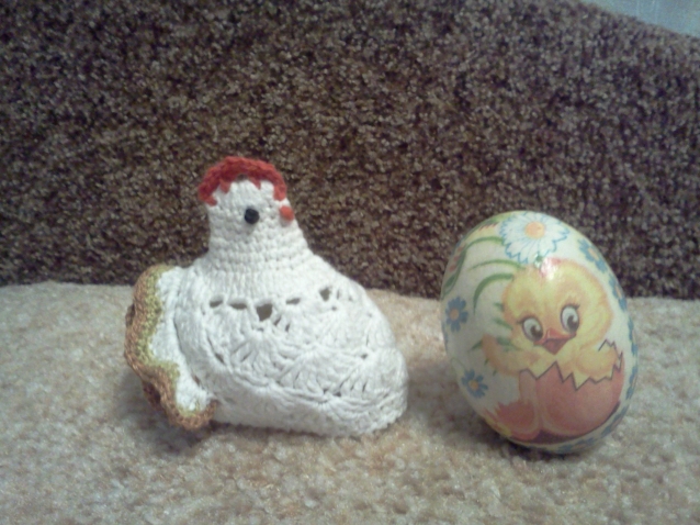 Вязанная курочка и пасхальное яичко с цыпленком.