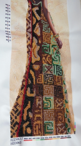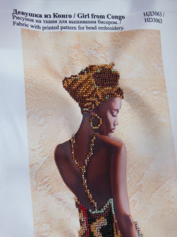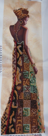 Эта девушка из Конго вышивалась в подарок для моей лучшей подруги. Она любит статуэтки африканок, их у нее довольно много. А я вот решила ей вышить африканку. Набор фирмы "Ново слобода", вышивка бисером, цветов не много всего 12, рисунок нанесен на ткань. Размер 16х52 см. Оформлять не стала, она сама подберет багет на свой вкус.