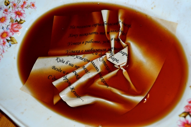 В широкой емкости щедро намочите лист бумаги. Если, как у меня, лист не помещается полностью в заварку, не расстраивайтесь) Полоскайте его, окунайте вручную)) Водные процедуры могут длится минут 10-15.. От этого будет зависеть насыщенность оттенка и степень "старины")