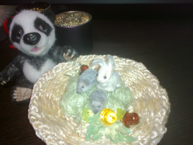 Мы всего, как час назад из духовки, поэтому еще совсем не очень шерстяные(лишь в один слой - уже темновато для такой работы сегодня)...