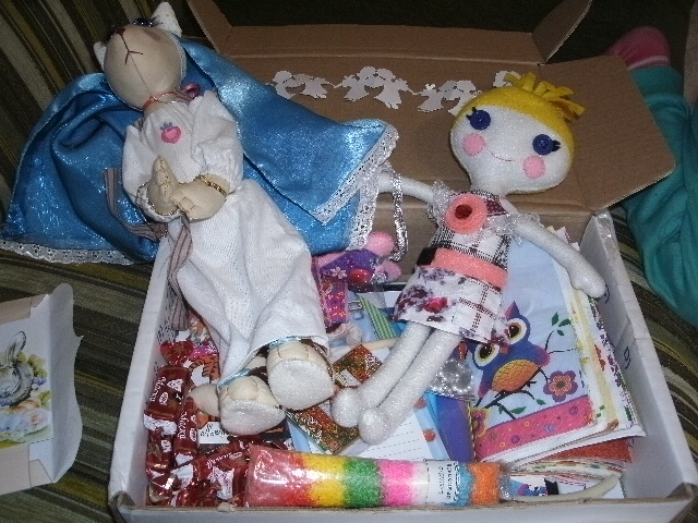 Разбираем. Едва не потеряла сознание, СТОЛЬКО всего!!!! Прежде всего-мечта сбылась, текстильная куколка Кошка Мария!!!!!!!!- это раз!!!!!