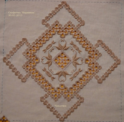 Получился настоящий Мастер-Класс по вышивке салфетки «Карамель».