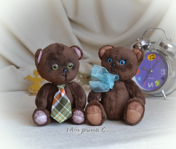 Девочки, "родились" у меня ещё два медвежонка. Очень хочется вам показать. Оба уже по своим домам. Рост 16 и 17 см. Одного попросили в подарок молодой девушке, а другого для молодой мамочки у которой родился сынуля Георгий.