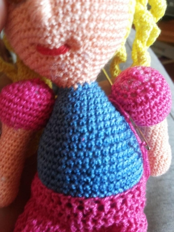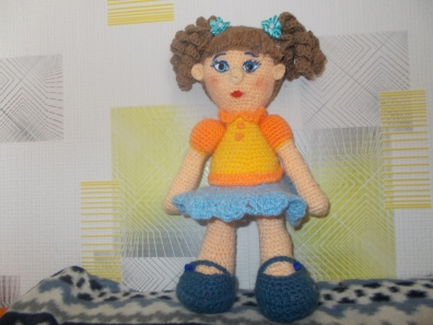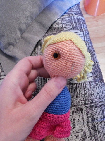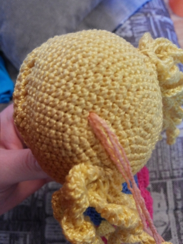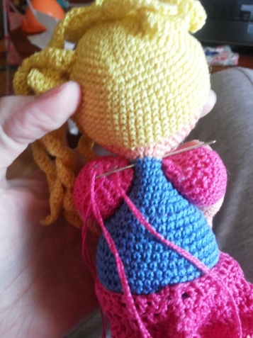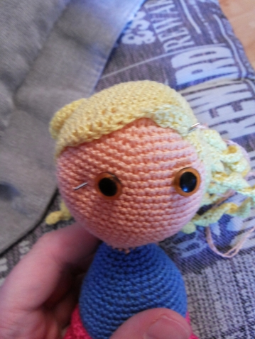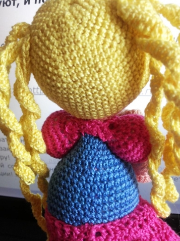 Я практичный человек. Паричок я не пришивала. Вяжу еще черный и рыжий. Ну и одежду, конечно. Кукла одна а образы разные. Когда закончу, покажу в топике.