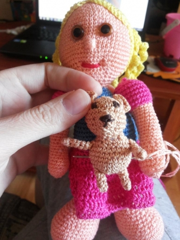 мишка в руках куклы должен был быть собакой породы чихуахуа)))