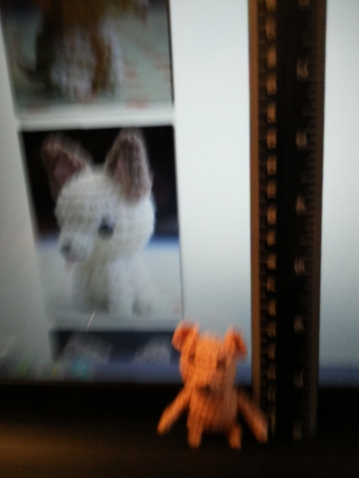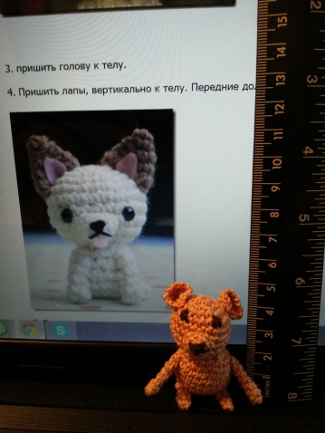 тут я схитрила и дала игрушку в руки кукле, чтобы руки не выглядели катастрофически жутко, потом дам описание этого чуда))) оно вместе с лапами 4,5 см получилось)))