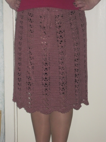 На юбку ушло 500г - остался маленький кусочек. Очень переживала, что не хватит - ниток было ровно 500г, а докупить невозможно - таких больше нет и не будет. Состав - 100% соевое волокно, 100г/230м. Юбка смотрится просто шикарно!!! Нитка мягкая, шелковистая, в вязке и носке очень послушная. Закончила я юбку ещё в марте (связала за 2 недели), а вот похвастаться хотела, когда немного поношу, чтоб знать, какая она будет при пользовании. Так что, девочки, если найдёте такую пряжу - хватайте не задумываясь! И мне сообщите. Я тоже хочу. Перерыла весь интернет - нигде нет даже упоминания о таких нитках... Глядя на эту юбку мне уже три заказа сделали.