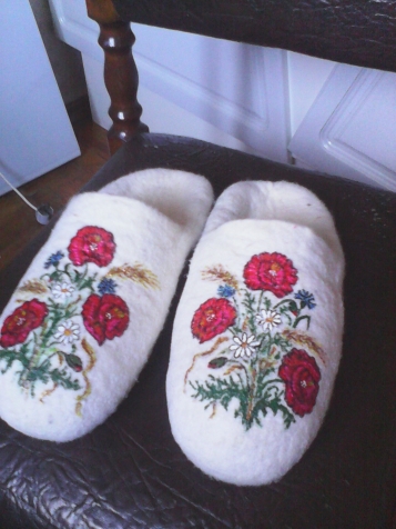 Те, что с маками, это не рисунок. Маки сваляла по мастер классам из интернета, частично пришиты, частично приклеены супер клеем.