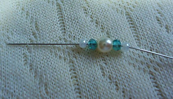 Если вы будете использовать кристаллы №2, их лучше расположить с двух сторон центральной бисеринки( на фото жемчужинка №4, для наглядности), вы можете использовать перламутровый или любой другой бисер, главное, чтобы он был немного крупнее кристалла.