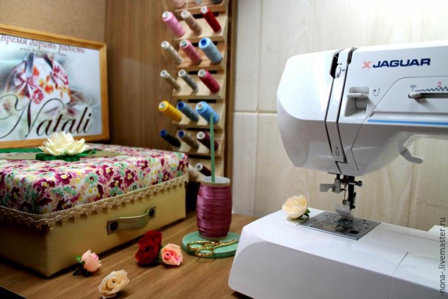 Чем для нас хорош рулончик? Объясняю: он из качественного картона, его можно сложить как блин (в коробке таких блинов поместится о-о-очень много), его можно расправить и надеть на нашу деревянную стойку – при пошиве ленточка будет разматываться свободно, не мешаясь и при этом никуда не закатываясь, и крепко держась на рулончике :). Закончили работу, сняли рулончик с держателя, сложили в коробочку! Молодцы!