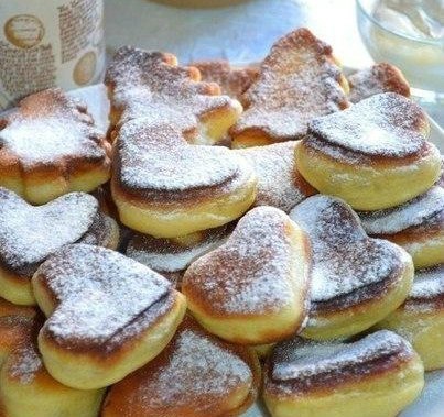 Ингредиенты: -Кефир — 250 г -Сахар — 5 ст. л. -Сода — 1 ч. л. без горки -Соль — 0,5 ч. л. -Растительное масло — 2 ст. л. -Яйцо — 1 шт. -Мука — 4 стакана -Ванилин — 1 пакетик -------- Приготовление: 1. Муку просеять с ванилином. 2. Кефир смешать с содой, дать постоять 10 минут. 3. Яйцо взбить с солью и сахаром, добавить масло. Еще раз хорошо размешать. 4. Яичную смесь соединить с кефиром. Аккуратно смешать. 5. Понемногу добавлять муку и мешать. Муки может уйти чуть меньше или чуть больше. 6. Тесто не должно быть тяжелым. Если сильно липнет к рукам, смажьте его растительным маслом. 7. Рабочую поверхность присыпать мукой, раскатать тесто толщиной примерно 2 см. Формочками вырезать фигурки. Если формочек нет, сделайте как я — стаканом вырежьте кружки и сделайте надрезы с 4 сторон, не доходя до середины. В процессе жарки получатся цветочки. 8. Обжаривать на растительном масле с 2 сторон, как оладушки. Особенно вкусно кушать такие пышки со сметаной, а также с джемами, вареньем, повидлом.