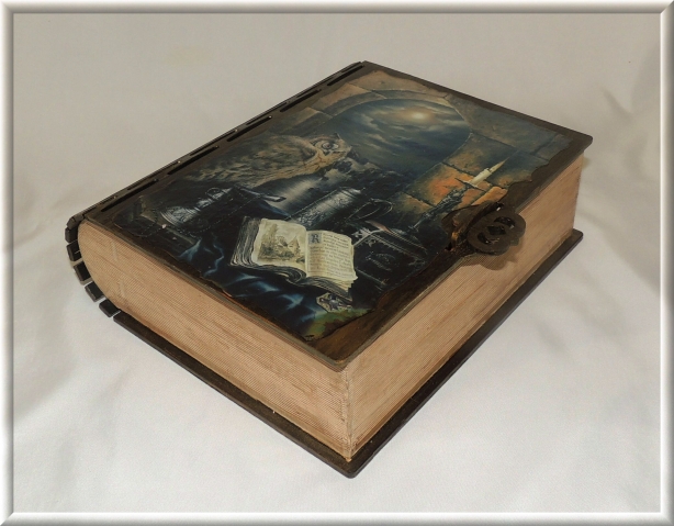 Наверное, эту работу стоит отнести не к технике декупажа, а просто к декору заготовки шкатулки-книги.