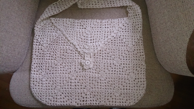 В отпуске время даром не теряла. В дороге ( а в дороге мы были практически каждый день) связала сумку из бабушкиных квадратов в монохроме. Получилась вполне вместимая торбочка для отдыха на курорте или просто вместительная городская сумка. Ушло на нее 360 грамм пряжи Маxi 100% хлопок 565 м в 100 гр, в две нитки. Размер 32 на 43. Клапан треугольный и петелька из шнура гусенички, пуговица тоже из тех же ниток. Я очень довольна результатом, поскольку процесс исключал всяческие трудноисполнимые идеи, тк вязала в машине по дороге из страны в страну.