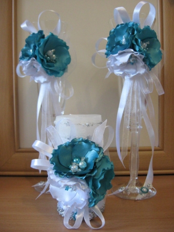 Представляю вниманию свой новый набор свадебных аксессуаров в стиле "Тиффани"... :)