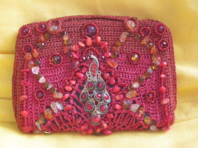 Скажи, дорогая, а внутри что? А бусинки не оторвуться? Мне кажется не очень надёжно на них. Вот если бы «молния». А свяжи к ней ручку, чтобы на руке носить. Туда и твоя коралловая помада поместиться.