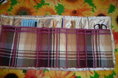 Я планирую из образца вязаного на спицах так же что-нибудь сшить. Для крючков у меня домик уже сшит (в комментарии выше показала). А для спиц кармашек настенный куда-то запропостился вместе со спицами, как я только это озвучила, что хочу заменить и с тех пор никак не могу найти, барабашка утащил (шутка). Правда этому есть вполне нормальное объяснение — ремонт и перетаскивание своих хомячьих запасов