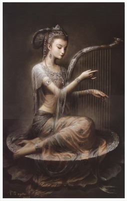Китайские мастерицы вышивают на картинах свою бессмертную богиню , словно живую.