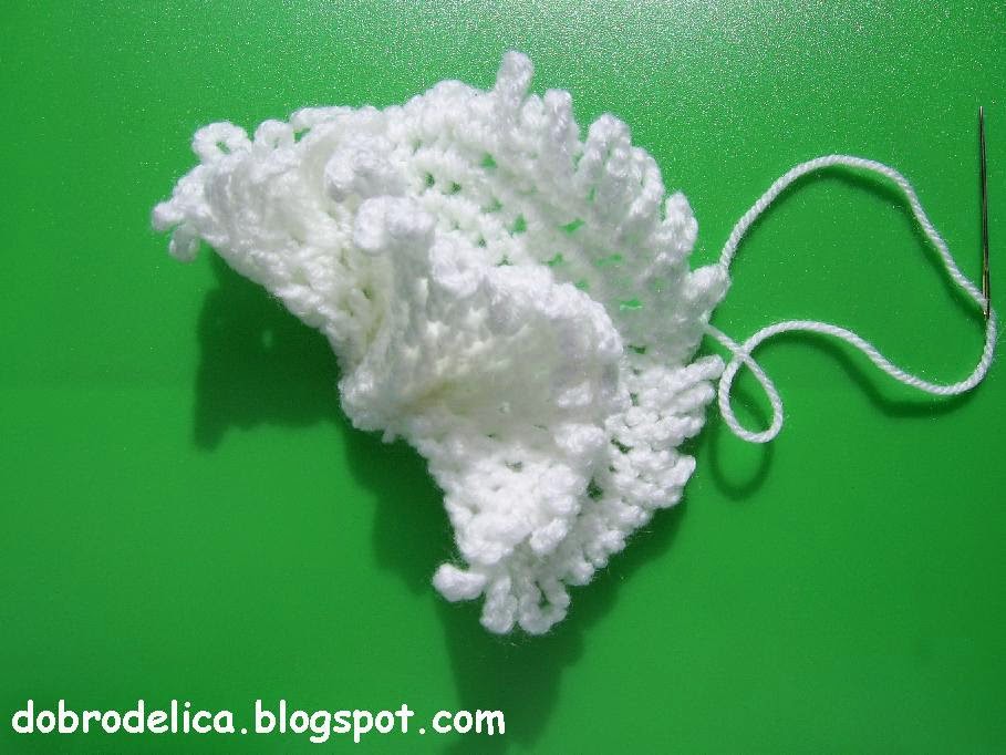 когда пришивала крылья, то шила просто через край и не в каждую петельку, а через одну и очень слабо затягивала, чтобы оставить воздушность - это касательно той части, что ближе к голове.