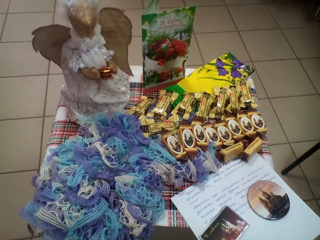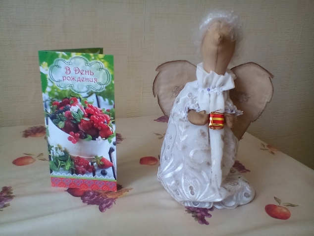 Вот так совсем неожиданно, но так вовремя моя мама получила подарок ко дню рождения из г. Челябинск от Леночки Вороновой! Подружились они после поздравления Елены с днём Матери в прошлом году. Не забывала она поздравлять мою маму и меня и с другими праздниками, поднимая наш настрой и воодушевление! И вот, благодаря душевному порыву Лены, мама теперь не одна, а с Ангелом-хранителем, удивительно повторяющий образ мамы. По крайней мере, я вижу их сходство. Как Леночка смогла догадаться как выглядит моя мама? А мама и охала, и ахала от такого счастья, как ребёнок! Полный восторг! И обо мне Лена не забыла, я получила в дар воздушный шарфик, опять же удивительнейшим образом подходящий к моему пальто по тону. Вот так, посидели мы с мамой, попили чаек с "Птичьим молоком" челябинским, и благодарили Господа за душевную щедрость наших форумчанок! Спасибо, Леночка! Здоровья, успехов и радости!