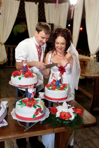 Такая свадьба наполнена красками, старинными обрядами, традиционными нарядами и веселыми развлечениями, поэтому надолго запомнится не только молодой паре, но и гостям, пришедшим разделить их первое семейное торжество. Конечно, подготовка к такому бракосочетанию потребует больше времени и особенного внимания, ведь даже мельчайшие детали антуража должны переносить присутствующих в те далекие века, когда праздники проходили пышно и с размахом, ведь недаром о том времени говорят «закатывали пир на весь мир». А развлечения? – чего только стоит катание на тройке с бубенцами, веселые хороводы, частушки, скоморохи!