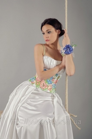 В древней Руси девушки на свадьбу никогда не одевали белое платье, этот обычай привез из Европы Петр Первый. В 15-16 веке русские невесты должны были сшить себе два наряда – один праздничный и яркий, а другой скромный и простой для венчания в церкви. Если вы выбираете сарафан, он должен быть расшитым национальными узорами. Обувь – туфельки или сапожки красного или белого цвета, они могут быть простыми или узорчатыми. Голову невесты украшает венок из полевых цветов или кокошник. Что касается прически, приветствуются косы и убранные назад с помощью различных плетений локоны. Украсить прическу можно цветами и лентами. Макияж русских красавиц несколько отличается от традиционных представлений о красоте – румяные щеки, черные брови и ресницы, накрашенные алой помадой губы.