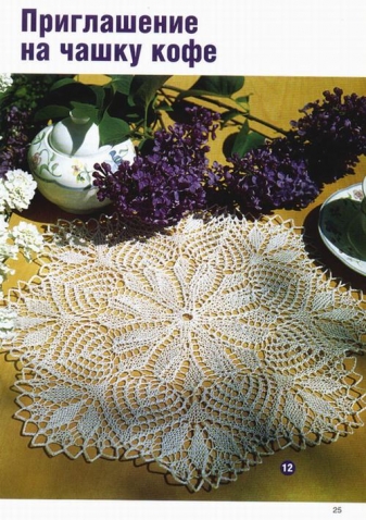 Салфетки моя страсть. Только у меня одновременно больше двух не бывает. Не задерживаются. Последнее время приглядываюсь к салфеткам на спицах. Решила: после шали этот вид рукоделия первый на очереди. Мне кажется, что они более нежные и гладкие. так что Вам огромное спасибо, за ложку к обеду.