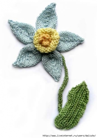 Самый первый белый цветок похож на нарцис.Я только крючком цветы вязала, теперь спицами попробую.Спасибо за подборку.