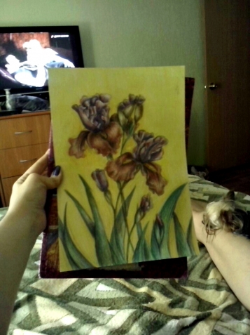Здравствуйте,заранее прошу прощения за качество фото.Это пленерная работа цветными карандашами на бумаге формата а4.
